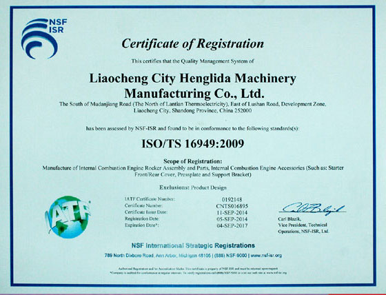In 2014, the company passed TS16949 quality management system certification, ISO9000 quality management system certification,environmental management system certification, and occupational health and safety management system certificationNews